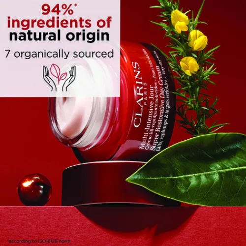 A Deeply Replenishing, Anti-Aging Day Moisturizer For Dry Skin That Minimizes The Appearance Of Lines, Wrinkles, And Slackening Caused By Age-Related Hormonal Changes, While Evening Skin Tone—For A Visibly Smoother, Firmer, Plumper, And More Youthful-Looking Complexion. This Next Generation Green Beauty Innovation Is Powered By 94% Ingredients Of Natural Origin. Clarins’ Proprietary New Lift-Replenish Duo Features Wrinkle-Fighting Organic Harungana Extract—As Effective As Retinol* And Gentle On The Skin— To Replenish And Visibly Minimize Loss Of Density And New Organic Gorse Extract, To Visibly Tighten And Improve Slackening Caused By Hormonal Deficiencies Linked To Menopause. Organic Shea Butter Deeply Nourishes And Soothes Even The Driest Skin. Organic Desert Date Extract And A Vitamin C Derivative Promote A More Even Skin Tone. Organic Sea Lily Extract Intensely Hydrates To Leave Skin Feeling Soft And Comfortable. Vegetal Squalane Extract Protects And Helps Reinforce The Skin’s Hydrolipidic Film To Shield From Environmental Pollution That Leads To Premature Signs Of Aging. Line-Filling Micro-Pearls Visibly Plump To Reduce The Look Of Lines And Wrinkles. Clarins’ Plant-Based Anti-Pollution Complex Features Nipplewort, Furcellaria &Amp; Organic White Horehound To Protect From Indoor And Outdoor Environmental Pollution, Including Skin-Aging Blue Light From Electronics. Skin Appears More Even, “Lifted”And Revitalized; Lines And Wrinkles Are Visibly Reduced. The Rich, Sensorial, Pale Pink Cream Melts Into The Skin Providing An Immediate Feeling Of Comfort And Well-Being To Very Dry Skin.*In Vitro Test On Collagen Synthesis