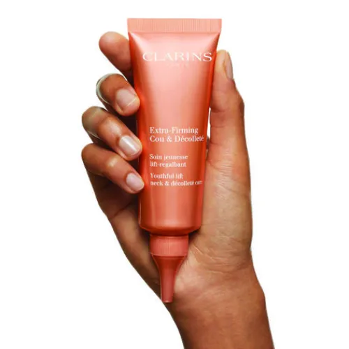 Smoothing, Youthful Lift Care For The Neck And Décolleté Formulated To Visibly Reduce Horizontal And Vertical Neck Wrinkles, Skin Slackening And Age-Related Dark Spots. The Neck Firming Cream’s Youth-Preserving Formula, Powered By The Sunflower Extract Firming Complex, Provides An Immediate Lift Effect To Sculpt The Fragile Area. Skin Is Visibly Firmer, Smoother, More Toned And Even With Results That Improve Day After Day. Clarins Inspiration And Innovation Inspired By The Movement Of The Sunflower’s Stem, Clarins Laboratories Combined Sunflower Extracts – Unsaponifiables Obtained From The Seed + Auxins Obtained From The Stem – To Improve The Elasticity And Firmness Of The Flexible Neck And Décolleté Area, Boosting The Skin’s Resistance To Daily Bending And Rotating While Protecting Against Harmful Indoor And Outdoor Pollutants. + Clarins Natural Plant-Based Expertise A Formula Powered By Plants To Promote Younger-Looking Skin. Anti-Aging Duo – Kangaroo Flower And Organic Mitracarpus Plant Extracts – Work Together To Help Smooth Lines, Firm, And Lift. Organic Desert Date Plant Extract Targets Dark Spots For A More Even Skin Tone. Organic Oat Sugars Plant Extract Provide An Instant Lift Effect By Tightening And Smoothing Rough Areas. Leaf Of Life And Shea Oil Hydrate, Nourish, And Comfort. Clarins Anti-Pollution Complex Helps Protect Skin From The Harmful Effects Of Pollution And Free Radicals. The Twist-To-Open Nozzle Tip Allows The Ultra-Sensorial, Melting Cream Texture To Dispense Easily And Evenly. The Texture Is Lightweight And Non-Oily So You Can Dress Immediately After Application. Use A Complete Routine Of Extra-Firming Care For A Dramatic Lifting And Firming Effect. Awards: Cosmopolitan’s Holy Grail Beauty Awards – Best Neck Cream (2020)